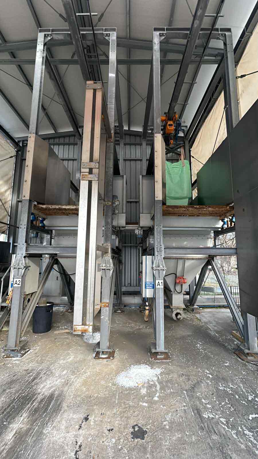 Grazie ad un paranco il big bag viene caricato a distanza dall’operatore e posizionato nel posto dove avviene un taglio lineare automatico per l’apertura del saccone.