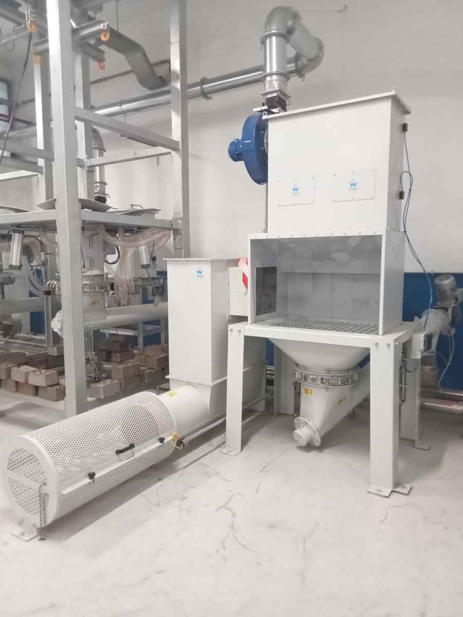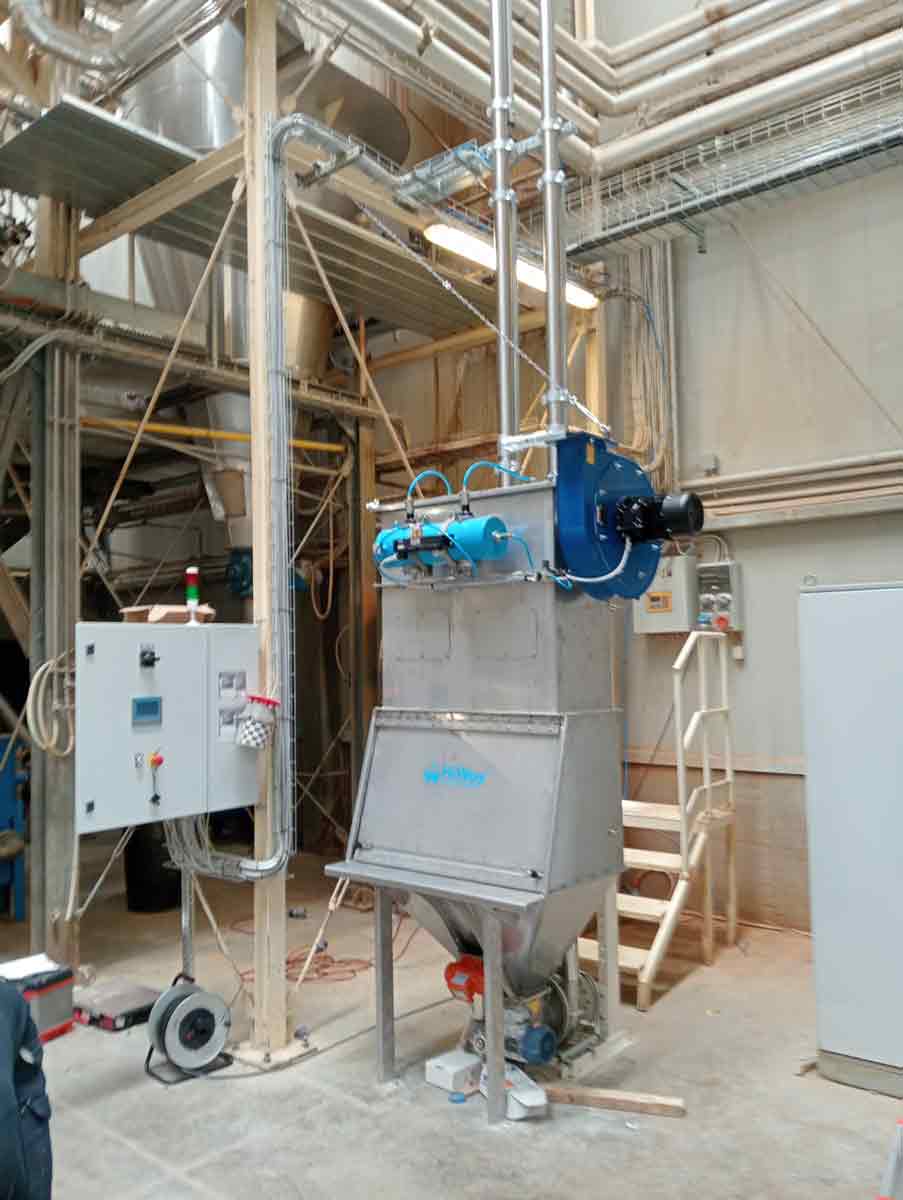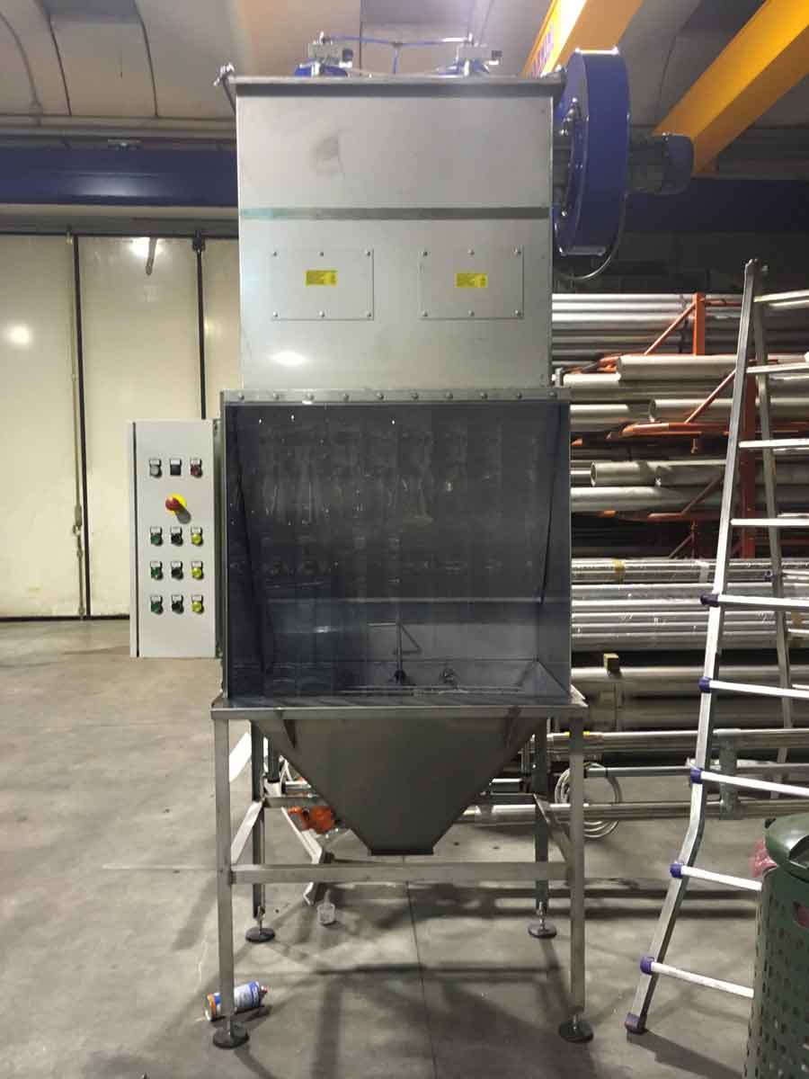 Stazione automatica o manuale dotata di un sistema di aspirazione tramite ventilatori e filtri per ripulire l’aria dalla polvere. È prevista anche una loro pulizia dove il materiale catturato può essere riutilizzato.
